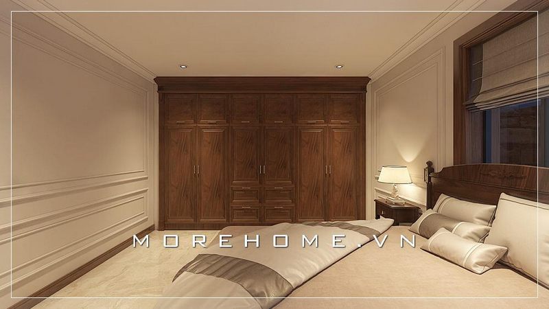 Mẫu tủ áo gỗ óc chó cao cấp phong cách tân cổ điển mang lại sự sang trọng cho cả không gian phòng ngủ
