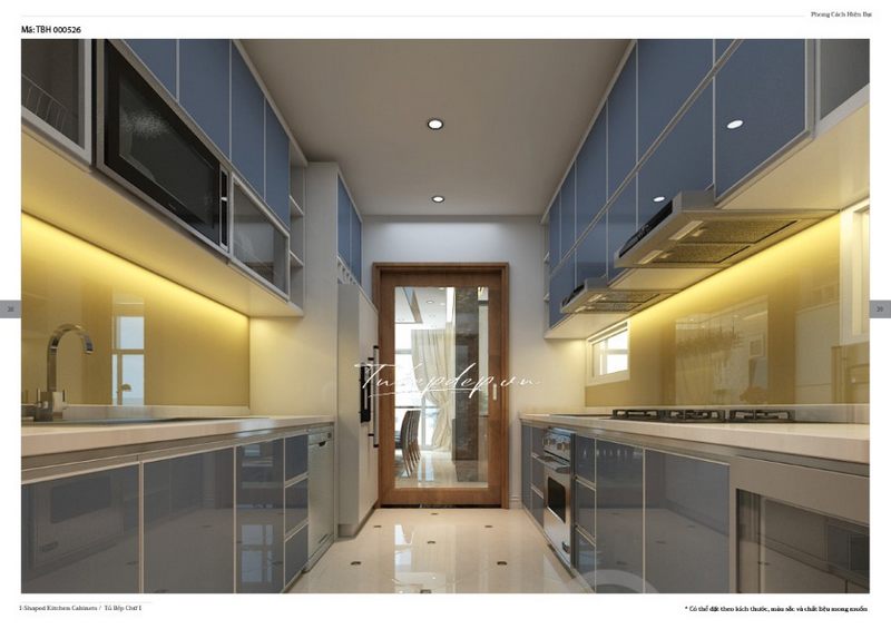Tủ bếp acrylic màu trắng hiện đại với thiết kế chữ i đơn giản sẽ làm cho phòng bếp của bạn trở nên đẹp hơn.