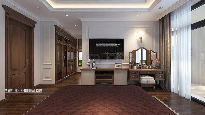 Cửa gỗ tân cổ điển cho phòng ngủ có thiết kế đẹp mắt và sang trọng, được làm từ gỗ óc chó nhập khẩu.